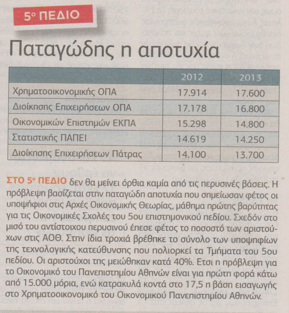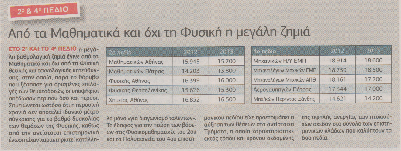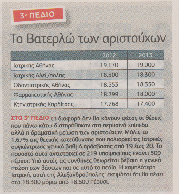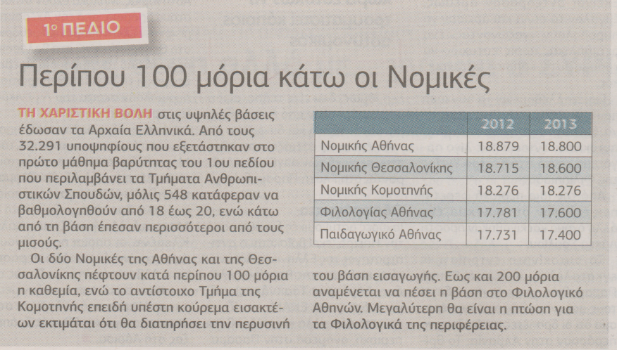 Με 18 στους πολιτικούς μηχανικούς του Μετσόβιου Πολυτεχνείου, με 18,8 στη Νομική Αθηνών, 16 στο Φυσικό και περίπου 19 στην Ιατρική Πανεπιστημίου Αθηνών. Είναι οι χαμηλότεροι βαθμοί που απαιτήθηκαν για την είσοδο στις πιο περιζήτητες πύλες της ανώτατης εκπαίδευσης την τελευταία δεκαετία, στη διάρκεια της οποίας το Μετσόβιο σκαρφάλωσε στο 19 και η Ιατρική κάλπαζε ασυγκράτητη προς το 19,5.