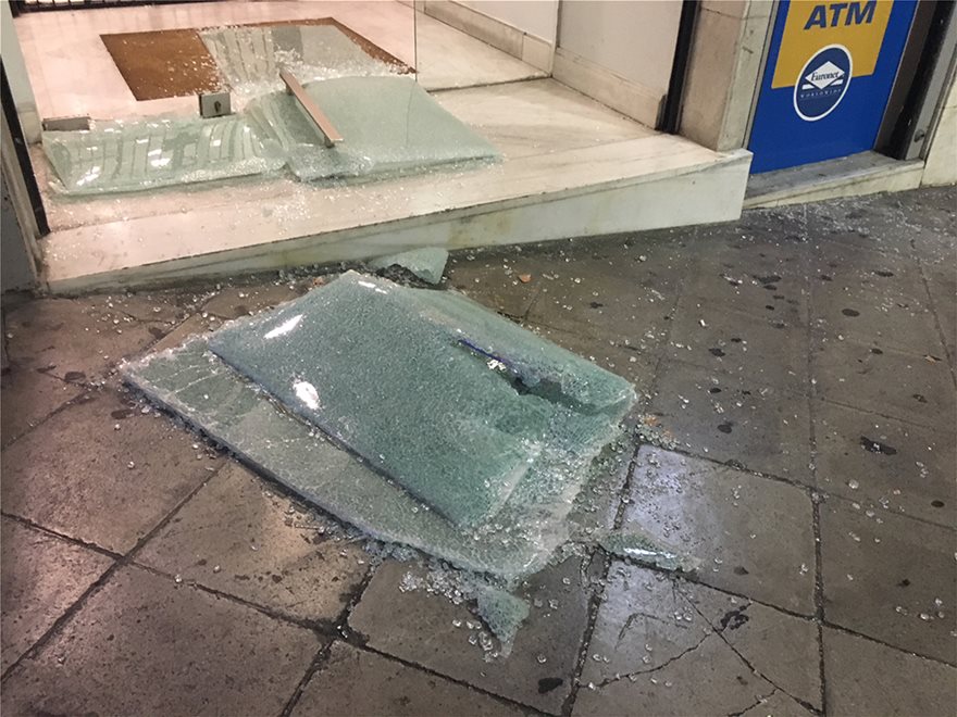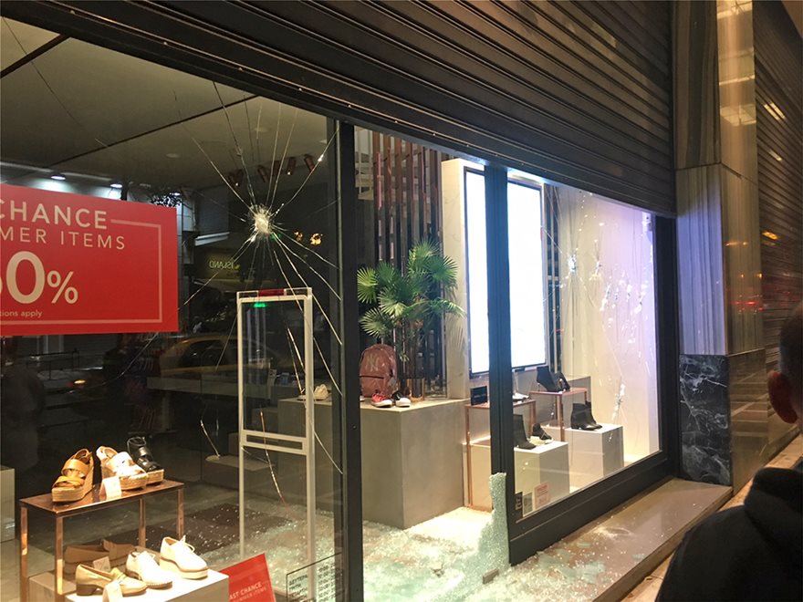 Κουκουλοφόροι που βρέθηκαν μεταξύ των διαδηλωτών προκάλεσαν βανδαλισμούς σε βιτρίνες καταστημάτων στην περιοχή του Συντάγματος λίγο πριν από τις οκτώ το βράδυ.