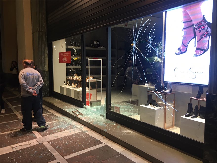 Κουκουλοφόροι που βρέθηκαν μεταξύ των διαδηλωτών προκάλεσαν βανδαλισμούς σε βιτρίνες καταστημάτων στην περιοχή του Συντάγματος λίγο πριν από τις οκτώ το βράδυ.