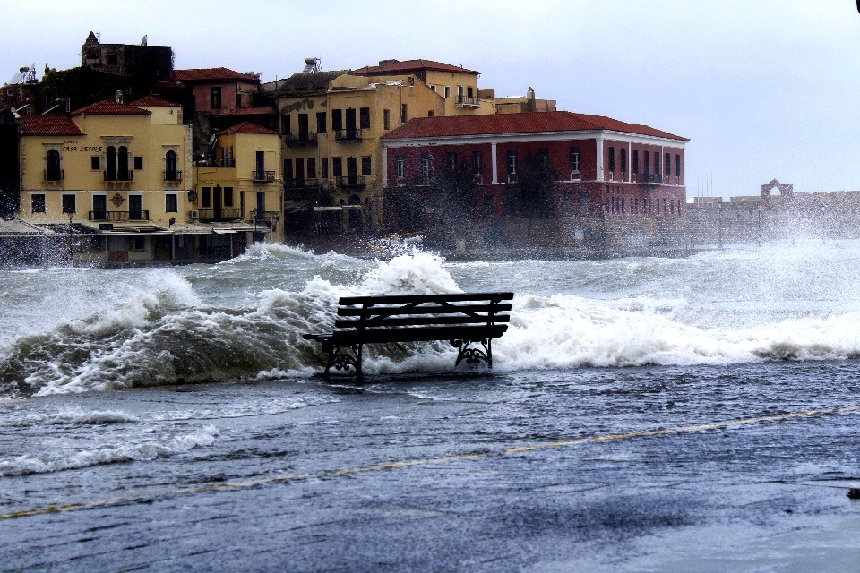 Η κακοκαιρία “Ηφαιστίων” έπληξε και τα Χανιά με τα κύματα να μπαίνουν βαθιά μέσα στο Ενετικό Λιμάνι μέχρι και τα καταστήματα, κάνοντας απροσπέλαστο το παραλιακό μέτωπο.