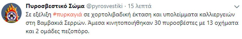 Άμεσα κινητοποιήθηκαν 30 πυροσβέστες με 13 οχήματα και δύο ομάδες πεζοπόρο.