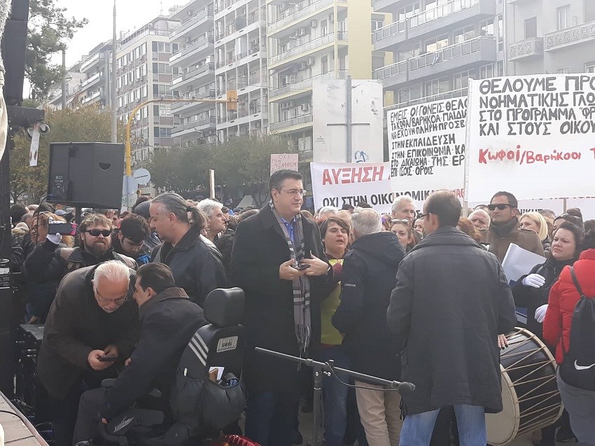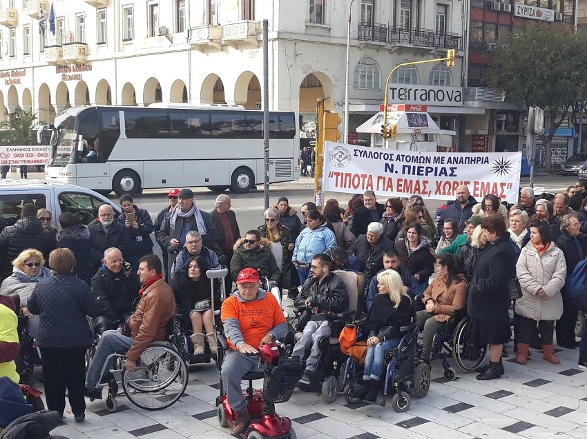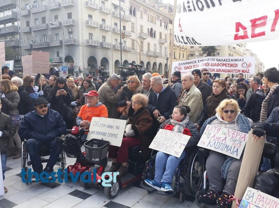 Σε εξέλιξη είναι αυτήν την ώρα το συλλαλητήριο των ΑμεΑ στο άγαλμα του Ελ. Βενιζέλου, στο κέντρο της Θεσσαλονίκης.Κύριο αίτημα των συγκεντρωμένων είναι η πρόσβαση σε ποιοτικές υπηρεσίες υγείας με αξιοπρέπεια και τη βελτίωση των συνθηκών διαβίωσης τους σε αξιοπρεπείς συνθήκες με ασφάλεια.Σε δηλώσεις του στο thestival. gr, ο πρόεδρος της Περιφερειακής Ομοσπονδίας ΑμεΑ και πρόεδρος του Πανελλήνιου Συλλόγου Παραπληγικών, παράρτημα Μακεδονίας- Θράκης, Αύγουστιδης Γιώργος τόνισε ότι: “Ζητούμε μέτρα στήριξης από την κυβέρνηση και τα υπόλοιπα κόμματα για να μην είμαστε οι αόρατοι ανάπηροι. Ζητούμε ελεύθερη πρόσβαση σε όλους τους χώρους”.Αμέσως μετά την ολοκλήρωση των ομιλιών στο παν-αναπηρικό συλλαλητήριο, οι συμμετέχοντες θα πραγματοποιήσουν πορεία προς το υπουργείο Μακεδονίας- Θράκης.Σημειώνεται ότι στο σημερινό παν-αναπηρικό συλλαλητήριο συμμετέχουν άτομα με αναπηρία και οι οικογένειές τους από όλα τα σημεία της χώρας.Δείτε τις φωτογραφίες του thestival.gr:
