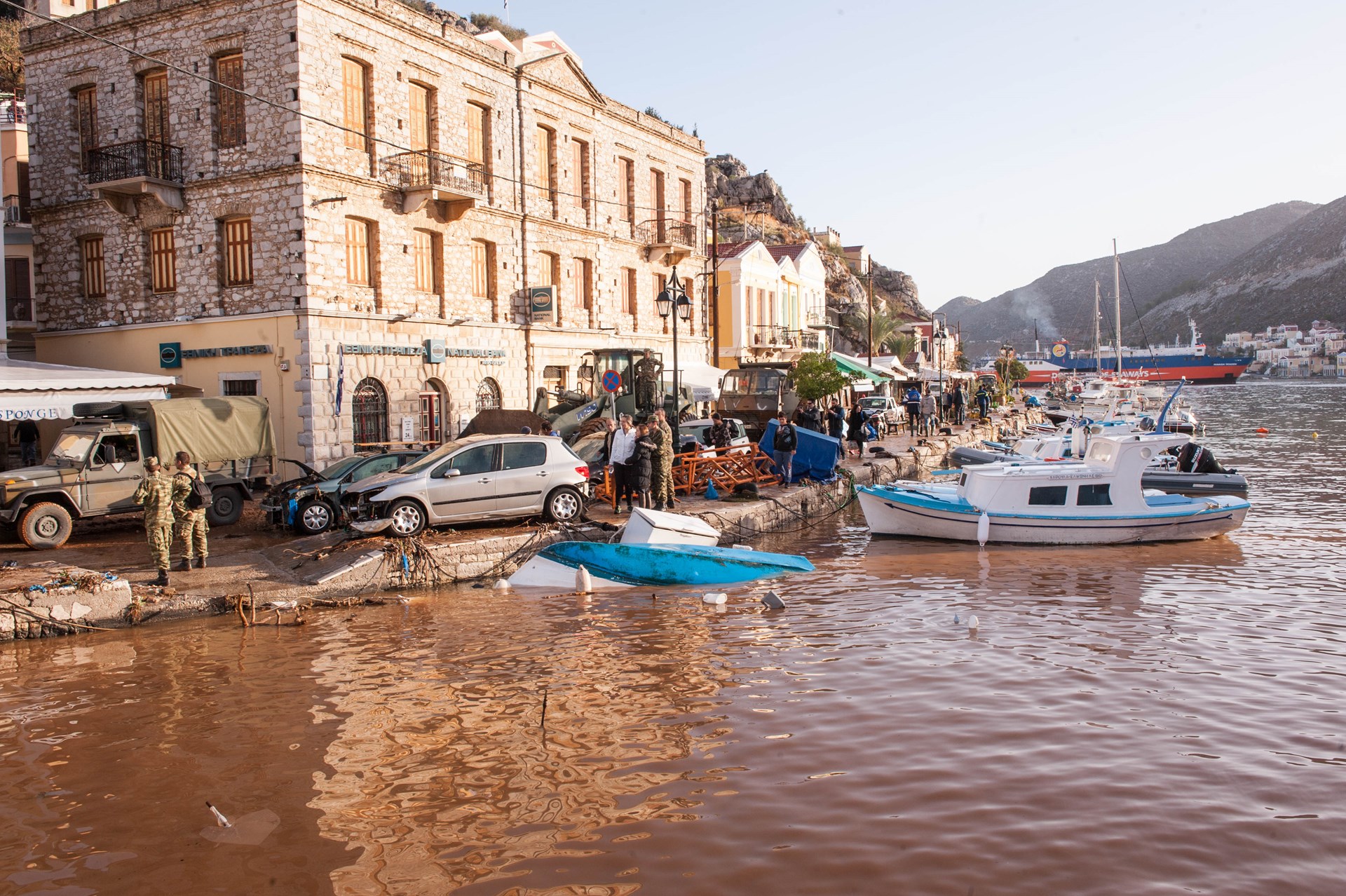 Σε κατάσταση εκτάκτου ανάγκης έχει κηρυχτεί η Σύμη, όπου καταβάλλονται εντατικές προσπάθειες από τον κρατικό μηχανισμό για τα έργα αποκατάστασης των ζημιών που έχουν προκληθεί από τη σφοδρή κακοκαιρία και να επανέλθει η ζωή σε κανονικούς ρυθμούς.