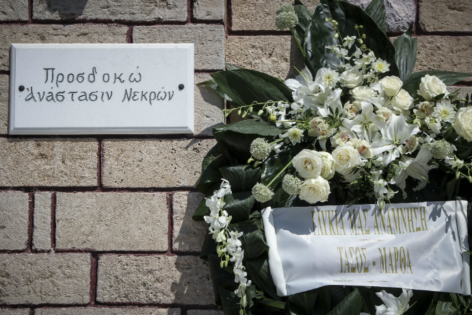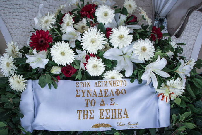 Στεφάνια, παρά την παράκληση της οικογένειας αντί στεφάνων να στηριχθεί οικονομικά το Νηπιοκομείο Καλλιθέας, έστειλαν, μεταξύ άλλων, ο Πρόεδρος της Βουλής, ο Υπουργός Εθνικής Άμυνας και η ΕΣΗΕΑ.