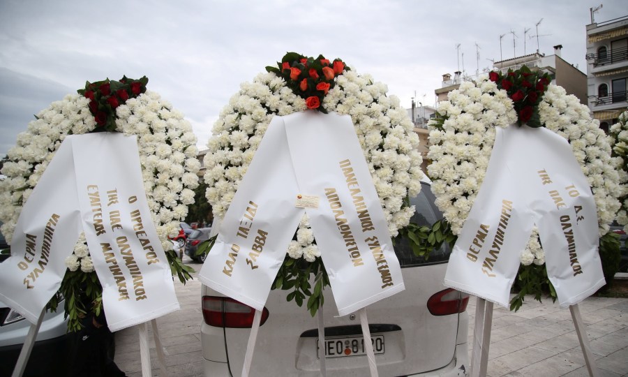 Στέφανα, ανάμεσα σε άλλους, έστειλαν η «ερυθρόλευκη» ΠΑΕ, ο πρόεδρός της, Βαγγέλης Μαρινάκης, η ΚΑΕ ΠΑΟΚ, η ΕΟΚ, οι οικογένειες των Παναγιώτη Αγγελόπουλου, Γιώργου Αγγελόπουλου, Βασίλη Σπανούλη καθώς και πολλοί άνθρωποι του αθλητισμού.