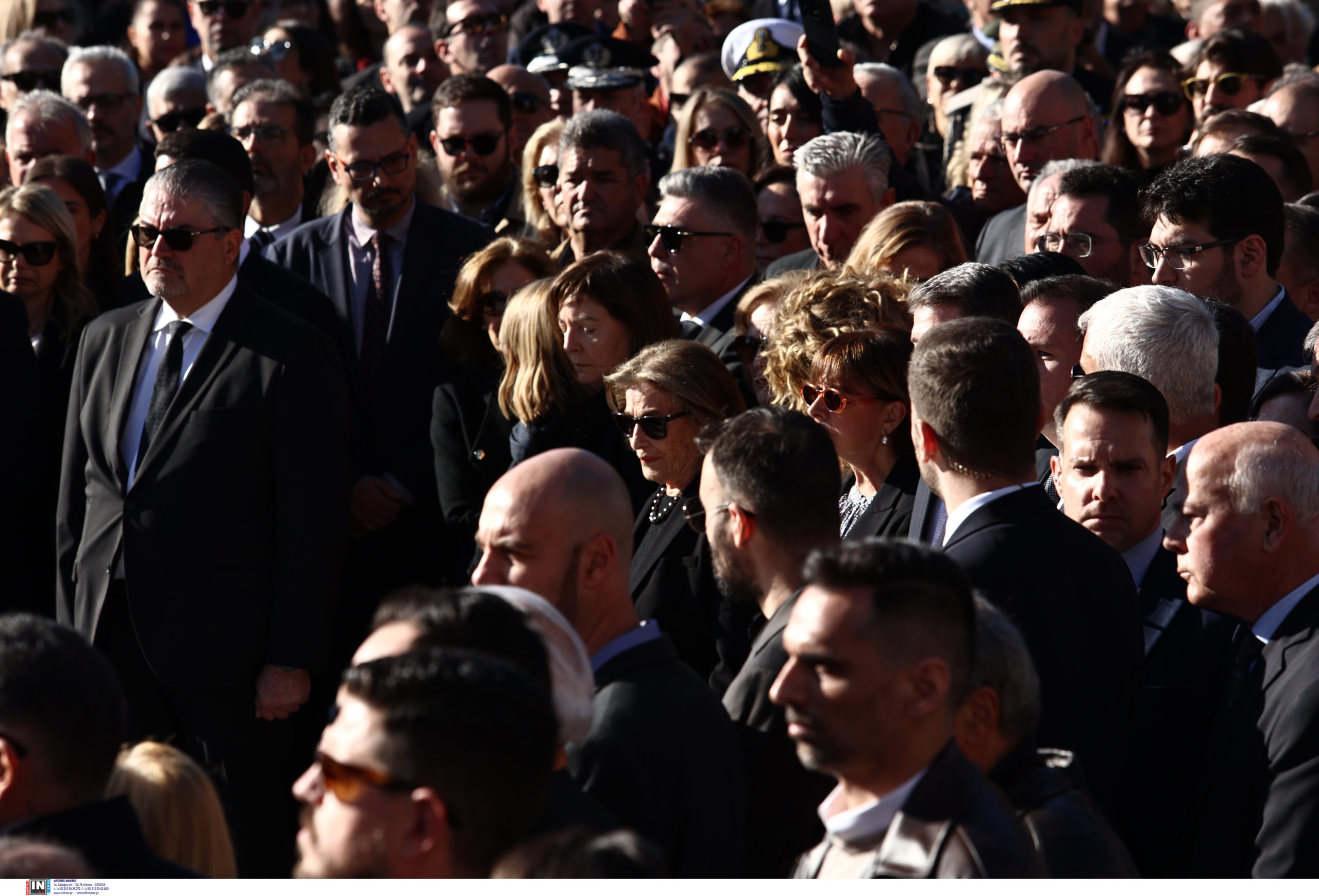 Η σύζυγός του, Δάφνη, και οι δύο κόρες τους, Φιόνα και Μαριλένα, βρίσκονταν μπροστά από το φέρετρο του πρώην πρωθυπουργού μέσα στην Μητρόπολη και δέχτηκαν τα συλλυπητήρια των παρευρισκομένων.