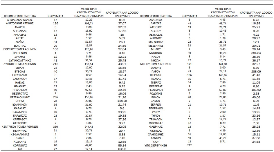 Στο “κόκκινο” παραμένουν Αττική, Θεσσαλονίκη και Κρήτη, ενώ “βράζουν” Πάρος, Σαντορίνη και Μύκονος, όπως προκύπτει από την επίσημη ενημέρωση από τον ΕΟΔΥ.