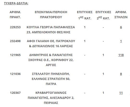 Επίσης, τρία τυχερά δελτία βρέθηκαν στην 2η κατηγορία που κερδίζουν 52.733,38 ευρώ το καθένα.