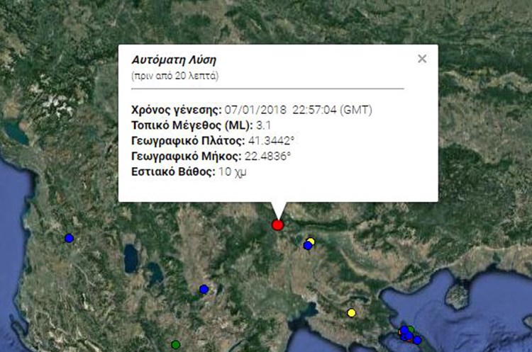 Συγκεκριμένα, σύμφωνα με την αυτόματη, προκαταρκτική λύση του Γεωδυναμικού Ινστιτούτου του Αστεροσκοπείου Αθηνών, η δόνηση σημειώθηκε στις 00.57 σε εστιακό βάθος δέκα χιλιομέτρων.