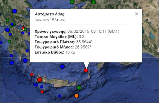 Σεισμική δόνηση 3,3 βαθμών της κλίμακας Ρίχτερ σημειώθηκε στις 3.10 τα ξημερώματα της Παρασκευής (5/2) στη θαλάσσια περιοχή κοντά στην Κάρπαθο.