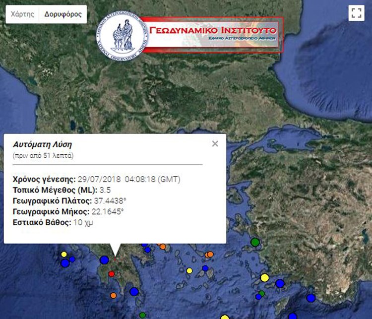 Σεισμική δόνηση μεγέθους 3,5 Ρίχτερ σημειώθηκε νωρίτερα κοντά στη Δημητσάνα.