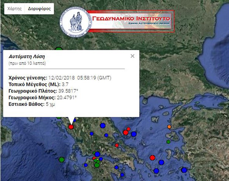 Σεισμική δόνηση σημειώθηκε πριν από λίγο κοντά στην Ηγουμενίτσα. Σύμφωνα με την αυτόματη λύση του Γεωδυναμικού Ινστιτούτου Αθηνών είχε μέγεθος 3,7 Ρίχτερ. Το επίκεντρο εντοπίζεται 16 χιλιόμετρα ανατολικά βορειοανατολικά της Ηγουμενίτσας και το εστιακό βάθος υπολογίζεται στα 5 χιλιόμετρα.