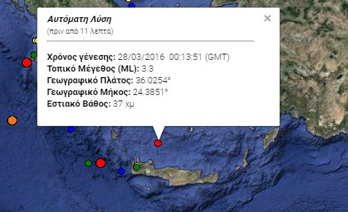 Όσο για το επίκεντρο του ήταν στα 65 χιλιόμετρα βορειοανατολικά των Χανίων.