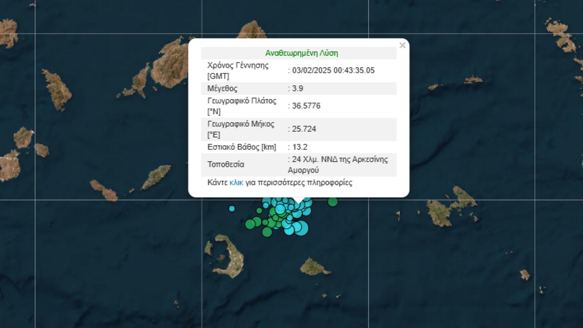 Σημαντική σεισμική δραστηριότητα καταγράφεται στη θαλάσσια περιοχή μεταξύ Σαντορίνης και Αμοργού, με επίκεντρο την ανοιχτή θάλασσα.