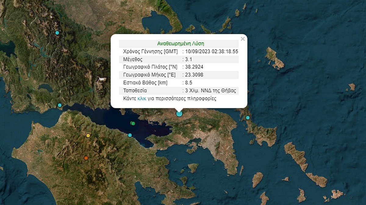 Σεισμός μεγέθους 3,1 βαθμούς της κλίμακας Ρίχτερ σημειώθηκε τα ξημερώματα της Κυριακής στη Θήβα.
