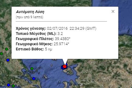 Ασθενής σεισμική δόνηση σημειώθηκε πριν από λίγο στον υποθαλάσσιο χώρο ανοιχτά της Μυτιλήνης.