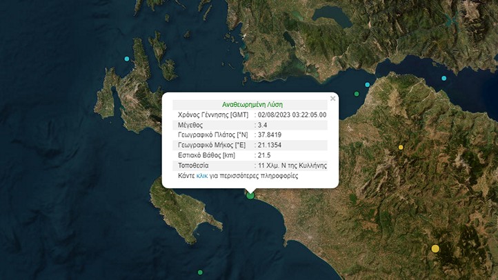 Σεισμός μεγέθους 3,4 βαθμών της κλίμακας Ρίχτερ σημειώθηκε το πρωί της Τετάρτης 2 Αυγούστου στην Κυλλήνη.