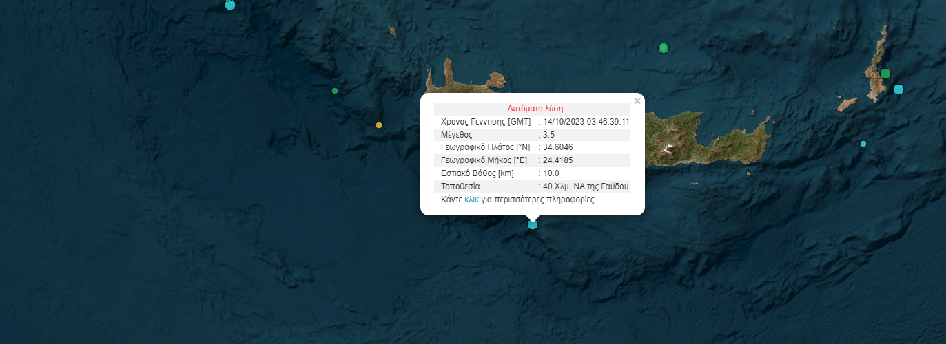Σεισμός μεγέθους 3,5 βαθμών της κλίμακας Ρίχτερ σημειώθηκε τις πρώτες πρωινές ώρες του Σαββάτου ανοιχτά της Γαύδου.