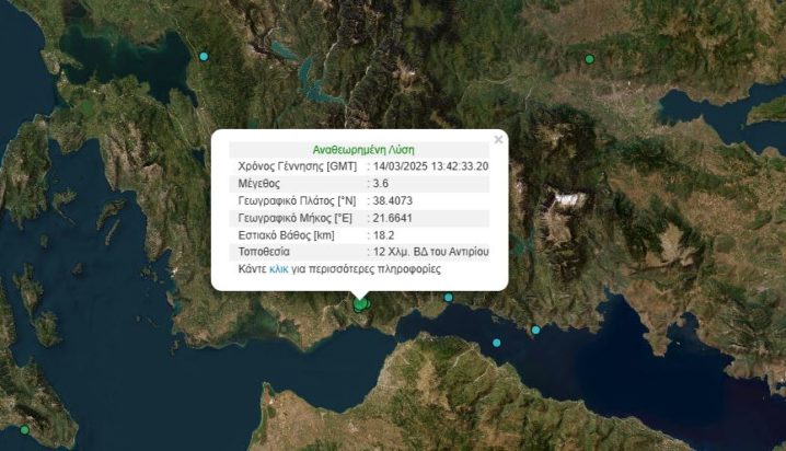 Σεισμός 3,6 Ρίχτερ σημειώθηκε πριν από λίγο στο Αντίρριο.