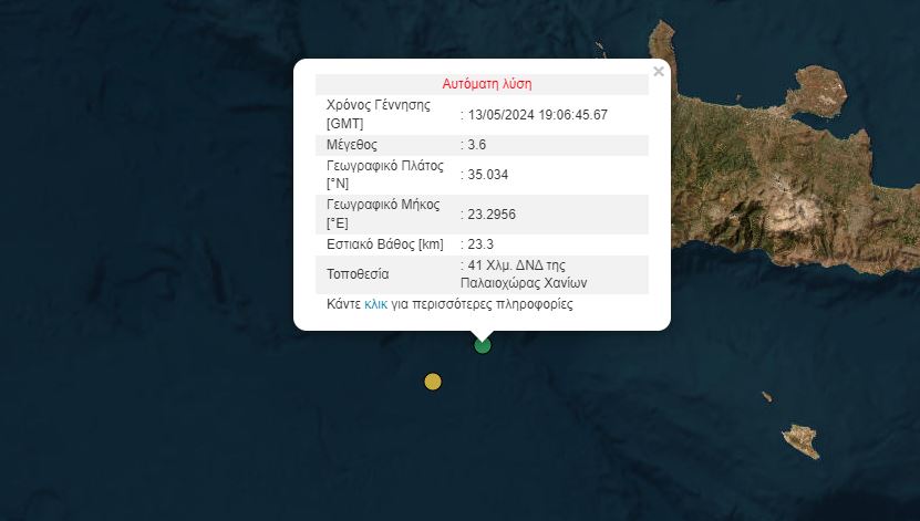 Σεισμός 3,6 ανοιχτά της Κρήτης