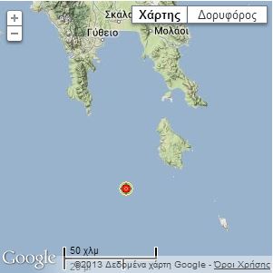 Σεισμός 3,6 R ανοιχτά των Κυθήρων