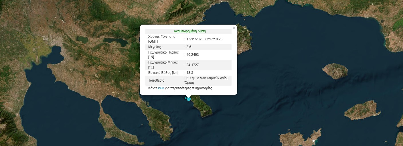 Σεισμός μεγέθους 3,6 βαθμών της κλίμακας Ρίχτερ σημειώθηκε λίγο μετά τα μεσάνυχτα της Πέμπτης στο Άγιο Όρος.