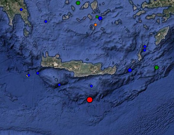 Το επίκεντρο της δόνησης ορίζεται σε θαλάσσια περιοχή 88 χλμ νοτιοδυτικά της Ιεράπετρας και το εστιακό της βάθος μετρήθηκε στα 10 χλμ.