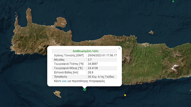 Σεισμός μεγέθους 3,7 βαθμών της κλίμακας Ρίχτερ σημειώθηκε τα ξημερώματα της Πέμπτης ανοιχτά της Γαύδου.