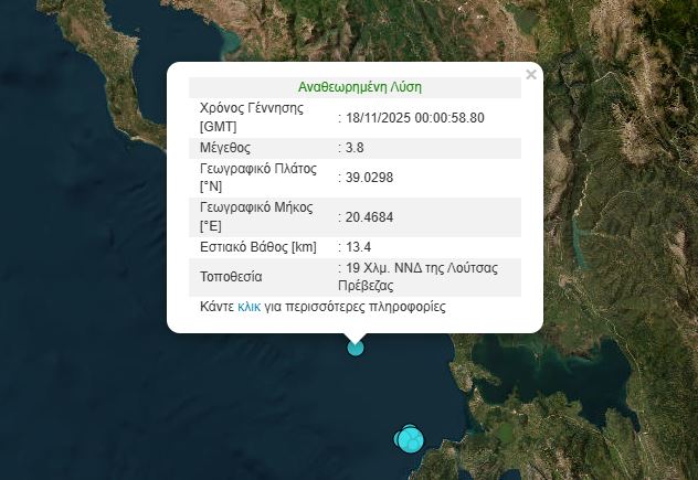 Σεισμός 3,8 βαθμών της κλίμακας Ρίχτερ σημειώθηκε πριν από λίγο στο Ιόνιο πέλαγος.