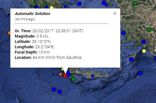 Σεισμός 3,9 Ρίχτερ στα ανοιχτά της Κρήτης