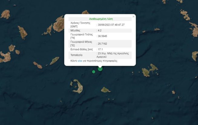Σεισμός 4,2 Ρίχτερ σημειώθηκε πριν από λίγο στις Κυκλάδες και συγκεκριμένα στη θαλάσσια περιοχή ανάμεσα σε Αμοργό και Σαντορίνη.