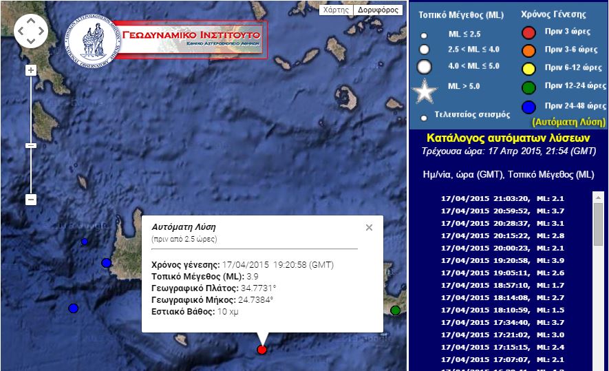 Ο σεισμός, που δεν είχε το ίδιο επίκεντρο με αυτόν των 6,1 Ρίχτερ, προερχόταν από απόσταση 63 χιλιομέτρων νότια, νοτιοδυτικά του Ηρακλείου και 32 χιλιόμετρα νότια του Τυμπακίου ενώ το εστιακό του βάθος εντοπίζεται στα 10 χιλιόμετρα .