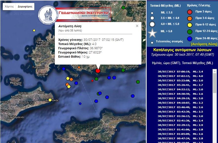 Ασθενής σεισμική δόνηση μέγεθος 4 Ρίχτερ, σημειώθηκε στις 10:02, στην περιοχή της Κω.
