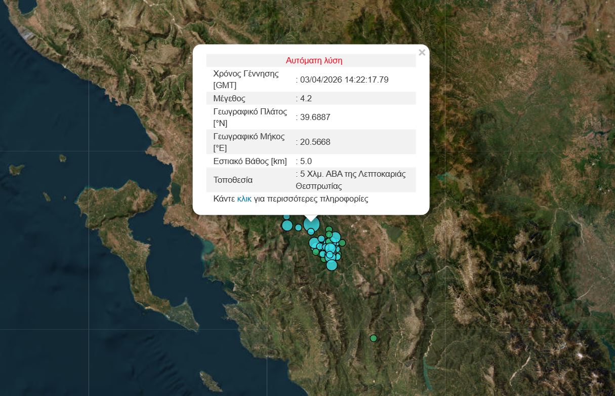 Σεισμός 4,2 Ρίχτερ στη Θεσπρωτία