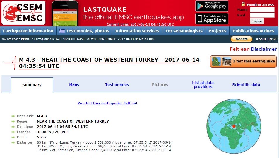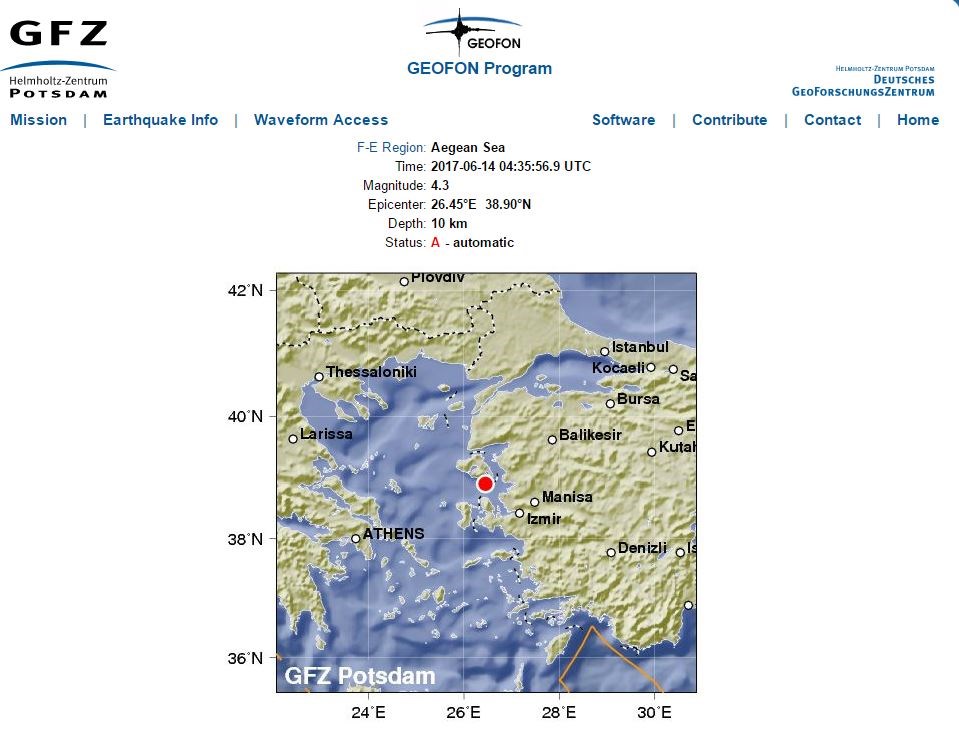 Σεισμός 4,3 Ρίχτερ έγινε πριν από λίγα λεπτά ανοιχτά της Λέσβου.