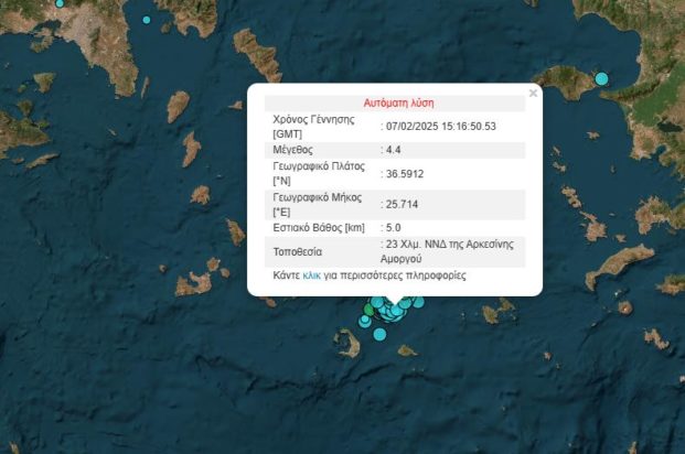 Σεισμός έντασης 4,4 βαθμών της κλίμακας Ρίχτερ σημειώθηκε πριν από λίγο στη θαλάσσια περιοχή ανοιχτά της Αμοργού.