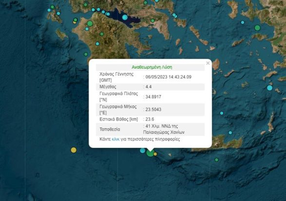 Σεισμός έντασης 4,4 βαθμών της κλίμακας Ρίχτερ σημειώθηκε ανοιχτά της Κρήτης, το απόγευμα του Σαββάτου (6/5).