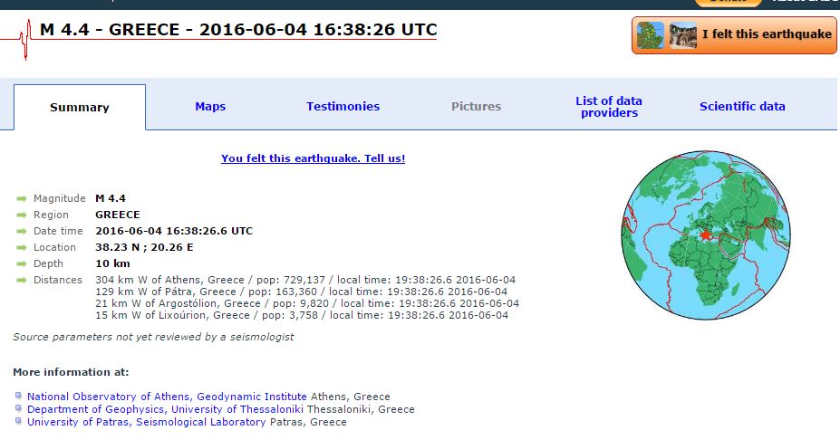 Σεισμική δόνηση μεγέθους 4,4 βαθμών της κλίμακας Ρίχτερ σημειώθηκε στην Κεφαλονιά. Σύμφωνα με το ευρωμεσογειακό σεισμολογικό ινστιτούτο ο σεισμός σημειώθηκε 21 χιλιόμετρα δυτικά του Αργοστολίου.