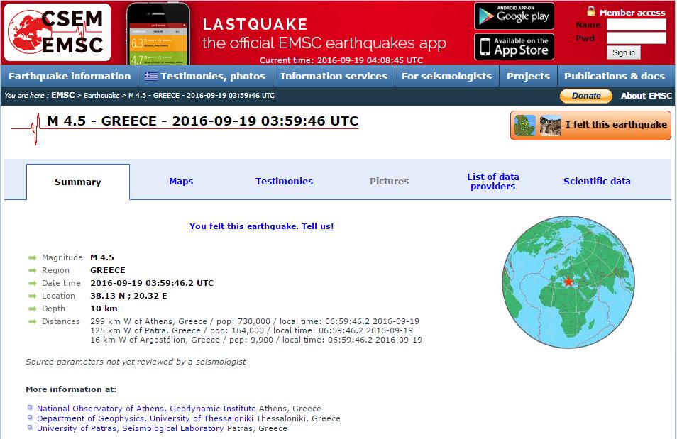 Σεισμός 4,5 Ρίχτερ σημειώθηκε νοτιοδυτικά της Κεφαλονιάς.
