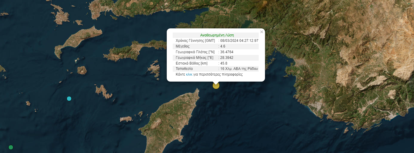 Σεισμός 4,6 Ρίχτερ συνέβη νωρίτερα στην Ρόδο. Σύμφωνα με τον πρόεδρο του ΟΑΣΠ, Ευθύμη Λέκκα πρόκειται για έναν σεισμό που δεν προκαλεί ανησυχία.