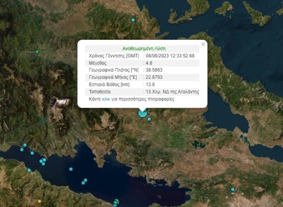 Σεισμός έντασης 4,8 βαθμών της κλίμακας Ρίχτερ σημειώθηκε πριν από λίγο στην Αταλάντη, ενώ έγινε αισθητός και στην Αττική.