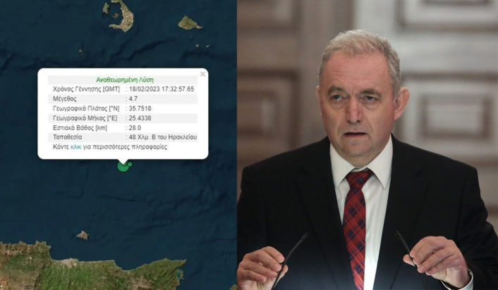 Για τον σεισμό μεγέθους 4,7 βαθμών της κλίμακας Ρίχτερ που έγινε πριν από λίγο στην Κρήτη μίλησε στο enikos.gr ο Πρόεδρος του Οργανισμού Αντισεισμικού Σχεδιασμού και Προστασίας Ευθύμιος Λέκκας.