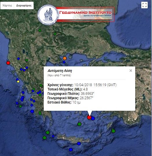 Πριν από λίγο το μέγεθος του σεισμού αναθεωρήθηκε στα 4,7 Ρίχτερ.