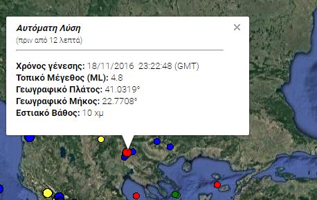 Σεισμική δόνηση μεγέθους 4,8 Ρίχτερ σημειώθηκε στις 1.22 τα ξημερώματα του Σαββάτου στα 17 χιλιόμετρα δυτικά, βορειοδυτικά του Κιλκίς.