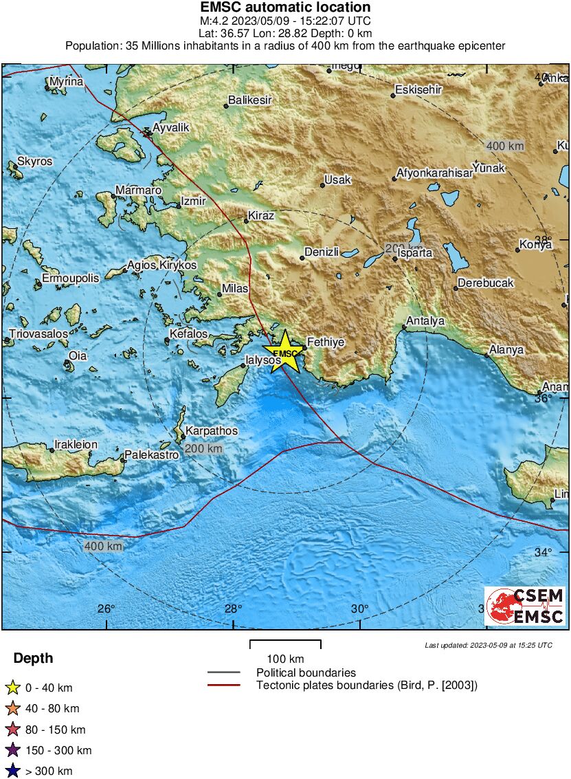 Ο σεισμός ήταν 4,2 Ρίχτερ σύμφωνα με το Ευρωμεσογειακό Σεισμολογικό Κέντρο, με επίκεντρο 26 χλμ νοτιοδυτικά της τουρκικής πόλης Φετίγιε.