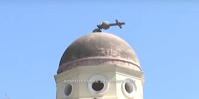 ‘Όπως αναφέρει η ιστοσελίδα romfea.gr στον ιστορικό Ιερό Ναό Κοιμήσεως της Θεοτόκου Μοναστηρακίου έχει λυγίσει ο Σταυρός στο καμπαναριό.