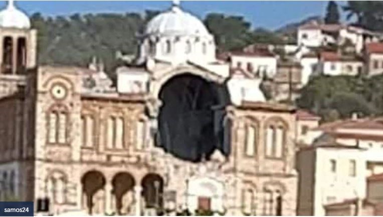 Η ισχυρή σεισμική δόνηση των 6,6 Ρίχτερ που έγινε στα ανοιχτά της Σάμου λίγα λεπτά πριν από τις 14.00 έχει προκαλέσει υλικές ζημιές σε σπίτια και επιχειρήσεις. Μέχρι στιγμής δεν υπάρχουν αναφορές για τραυματισμούς. Όπως φαίνεται και από εικόνα που αναρτήθηκε στα μέσα κοινωνικής δικτύωσης της τοπικής ιστοσελίδας samos24, μεγάλο τμήμα του ναού στο Καρλόβασι κατέρρευσε. Πρόκειται για την εκκλησία “Παναγία Θεοτόκου”.