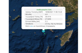 Σεισμός μεγέθους 4 Ρίχτερ έγινε πριν από λίγο στη Νίσυρο. Σύμφωνα με το Γεωδυναμικό Ινστιτούτο Αθηνών το επίκεντρο εντοπίζεται 23 χλμ. νοτιοδυτικά του νησιού.