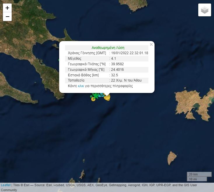 Καταγράφηκε προτού συμπληρωθούν 12 ώρες από τον ισχυρό σεισμό 5,4 βαθμών της κλίμακας Ρίχτερ στον θαλάσσιο χώρο 20 χιλιόμετρα νότια-νοτιοδυτικά της πόλης του Άθου, που έγινε αισθητός σε περιοχές της Θεσσαλονίκης και της Χαλκιδικής.