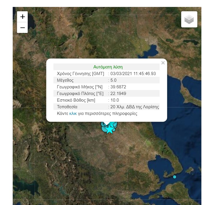 Νέες ισχυρές σεισμικές δονήσεις σημειώθηκαν μετά τον σεισμό των 6 Ρίχτερ στην Ελασσόνα. Πριν από λίγο σημειώθηκε σεισμός 5 Ρίχτερ με επίκεντρο 20 χλμ δυτικά βορειοδυτικά της Λάρισας και εστιακό βάθος 10 χλμ, ενώ ακολούθησε σεισμός 4,5 Ρίχτερ με επίκεντρο 14 χλμ βορειοδυτικά της Λάρισας και εστιακό βάθος 10 χλμ.